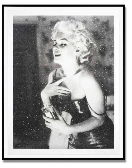 Hand-pulled acrylic and enamel screenprint on linen with Diamond Dust in Siren B+W
