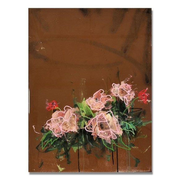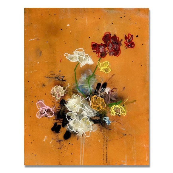 Acrylic, spray paint, pastel, and resin on canvas wrapped panel