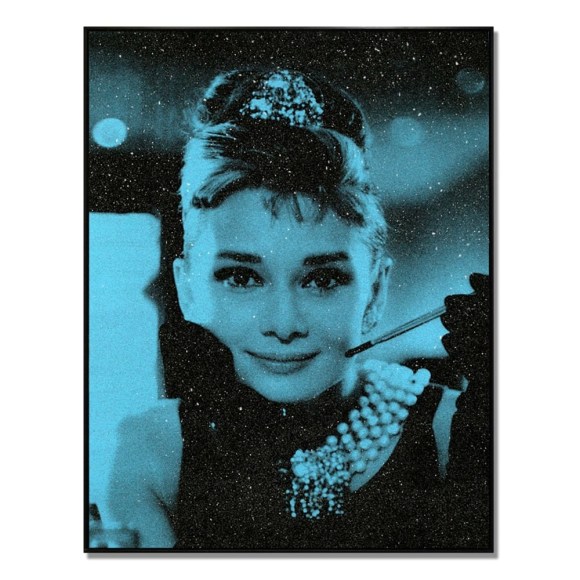 Hand-pulled acrylic and enamel screenprint on linen with Diamond Dust in New York Tiffany Blue
