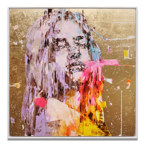Hand-pulled acrylic and enamel screenprint on linen with Diamond Dust