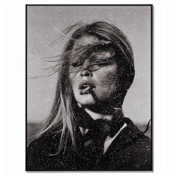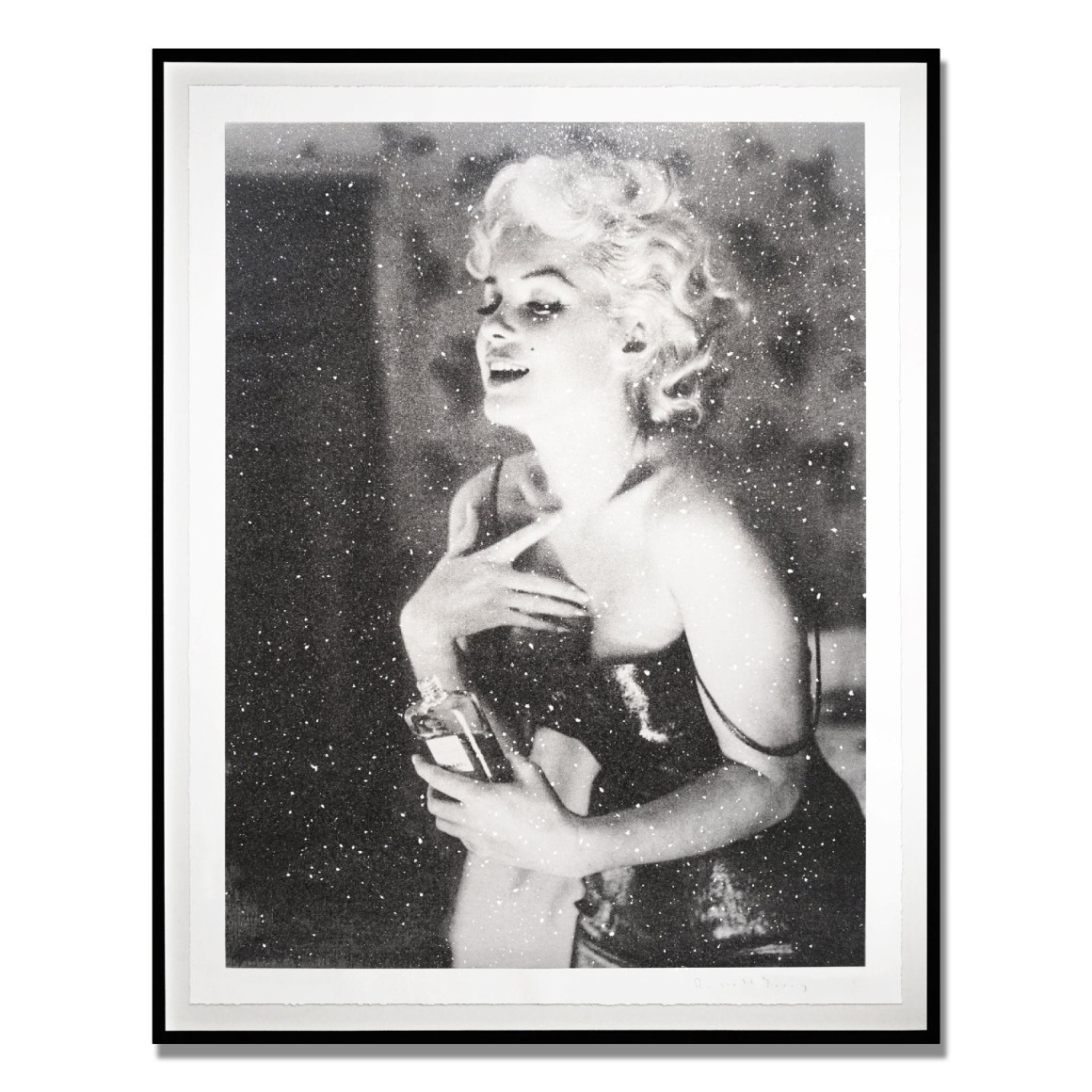 Hand-pulled acrylic and enamel screenprint on linen with Diamond Dust in Siren B+W