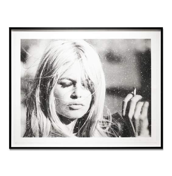 Acrylic, oil based ink and diamond dust hand pulled screen print on linen in Revolver White
