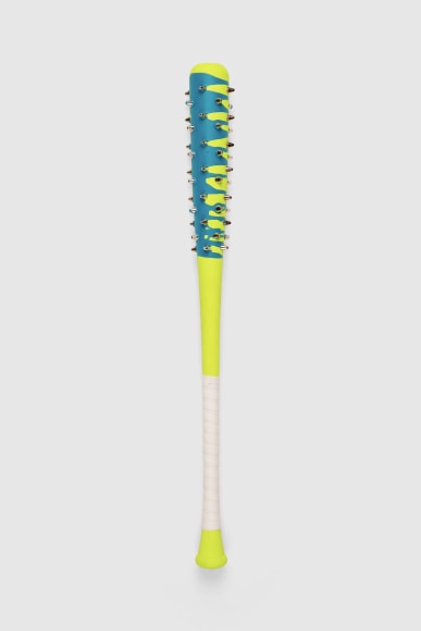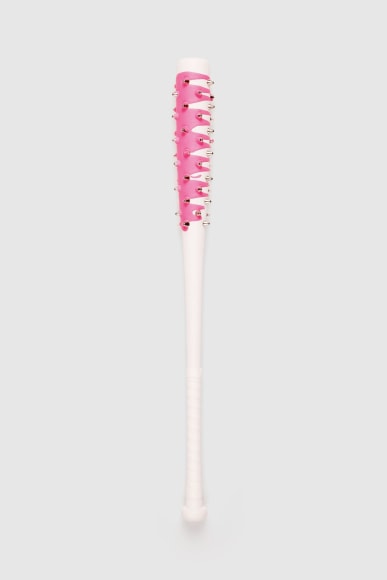 Hand carved and painted bat with spikes in White and Pink Cocaine