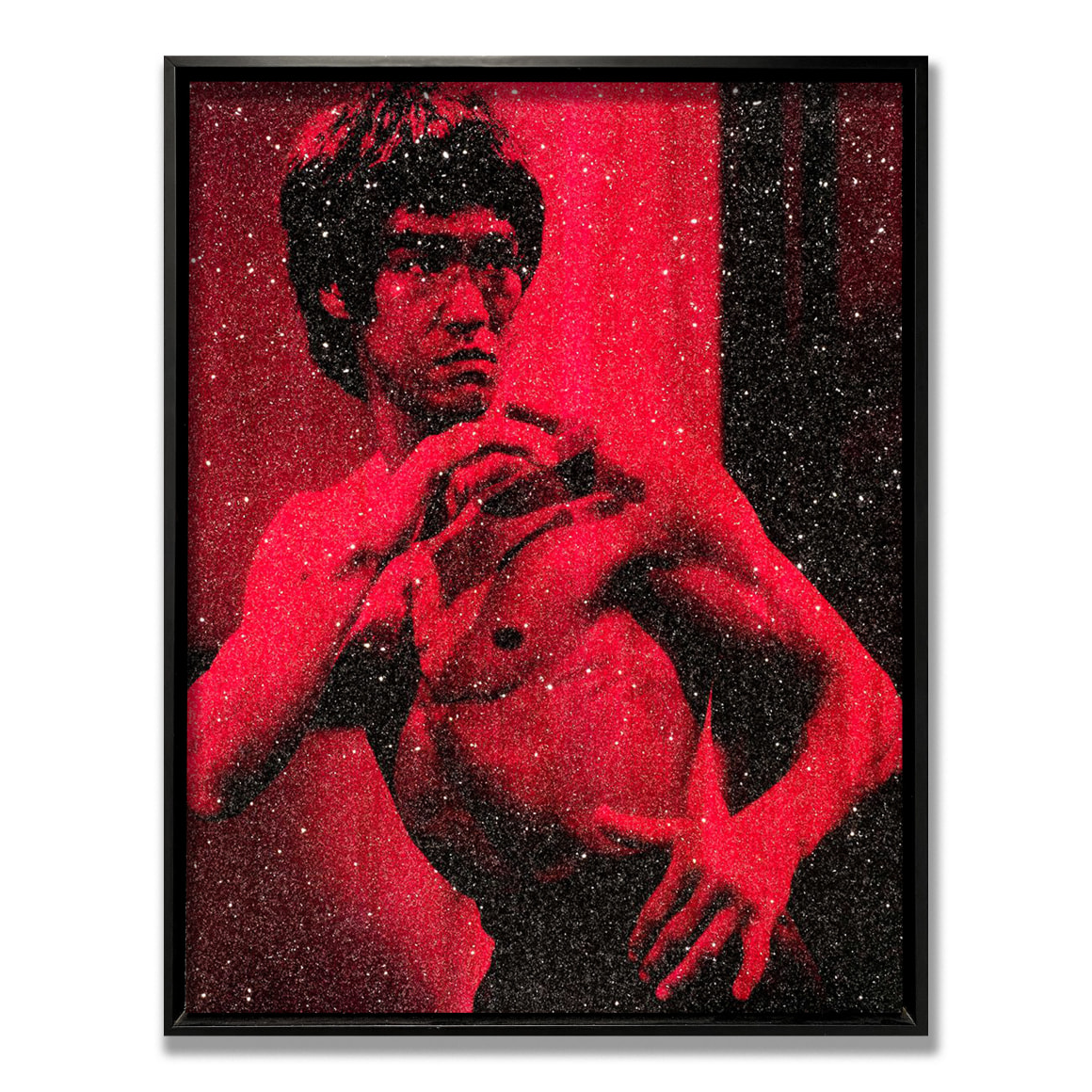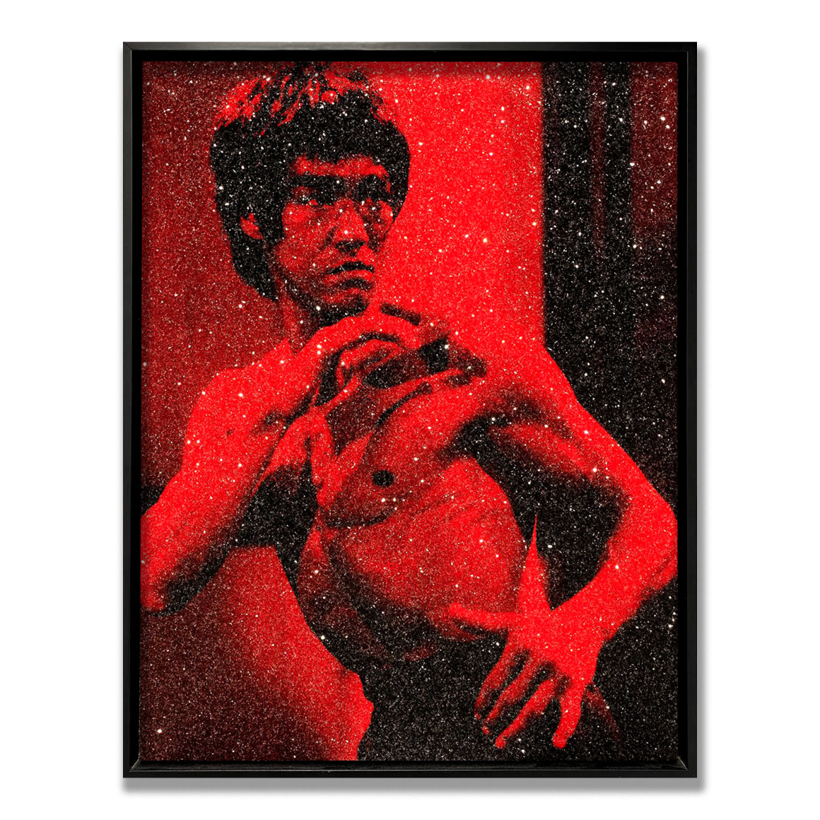 Acrylic, oil based ink and diamond dust hand pulled screen print on linen in Enter the Dragon Crimson