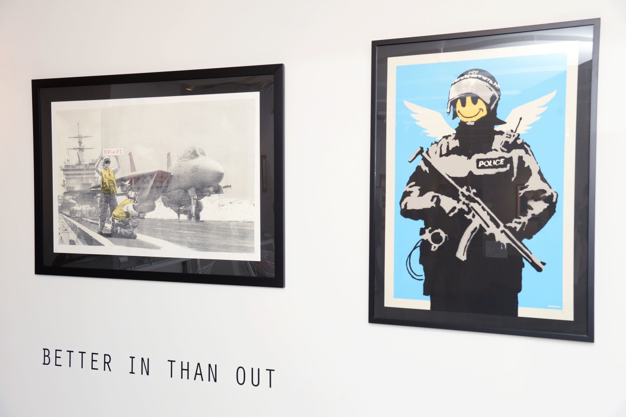 An overview of Banksy's art, including walls, paintings, and works on paper