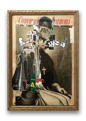 Mixed media on recycled bus shelter plexiglass and wood stretcher