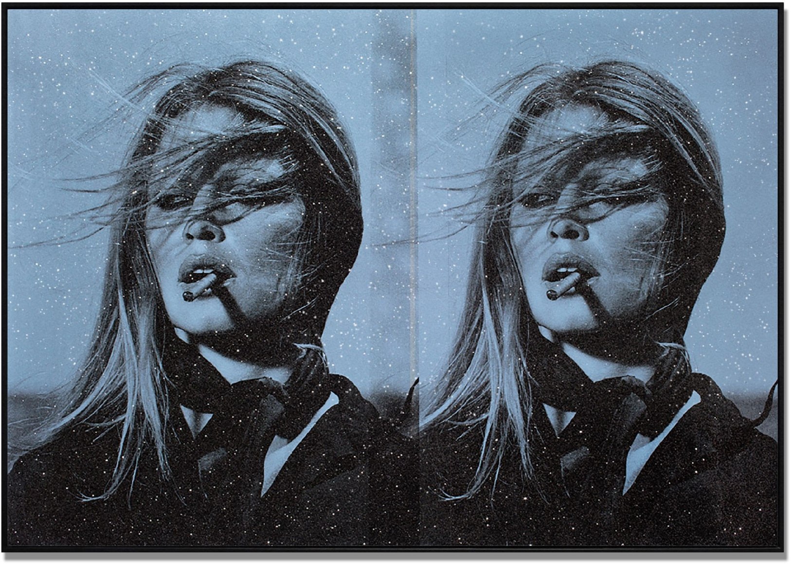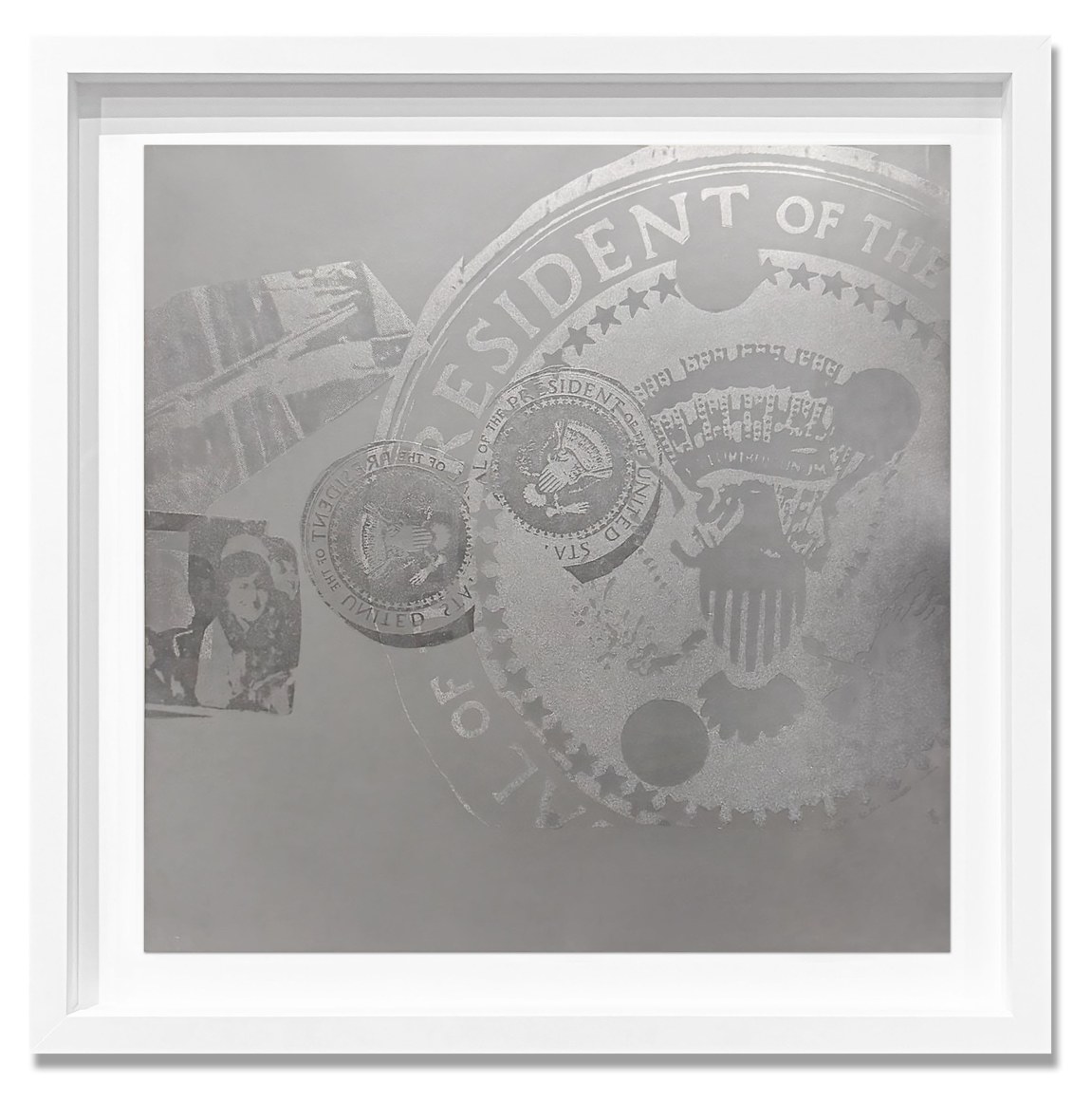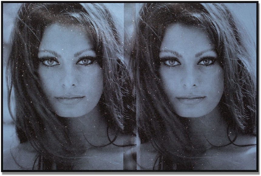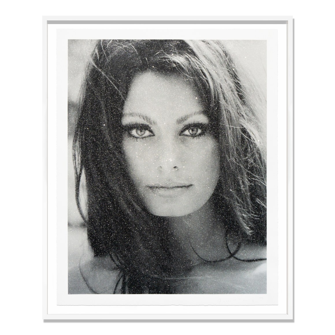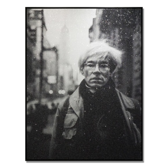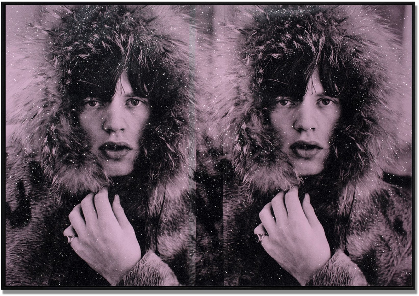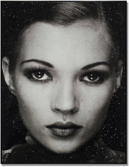 Acrylic, oil based ink and diamond dust hand pulled screen print on Coventry paper in B+W