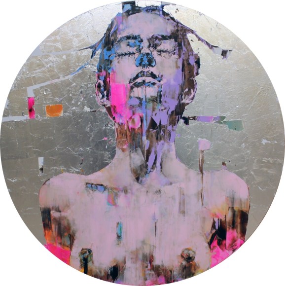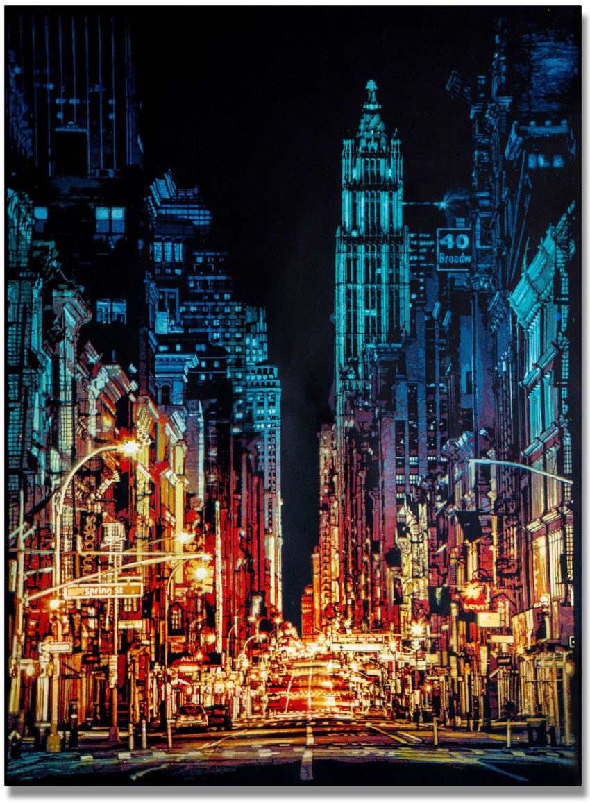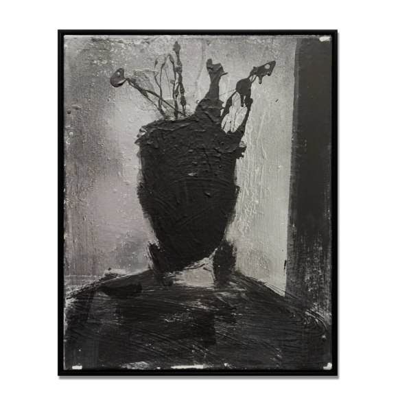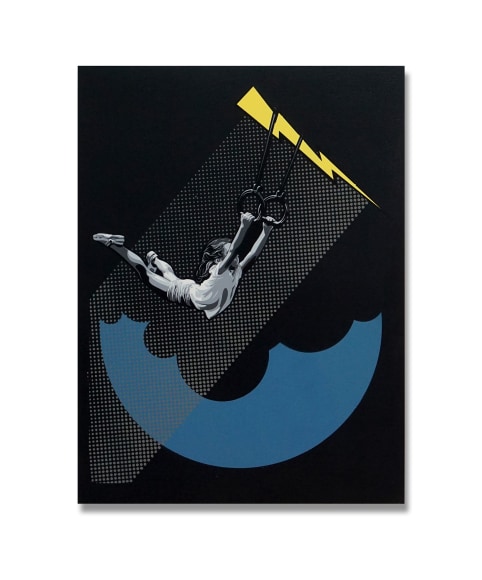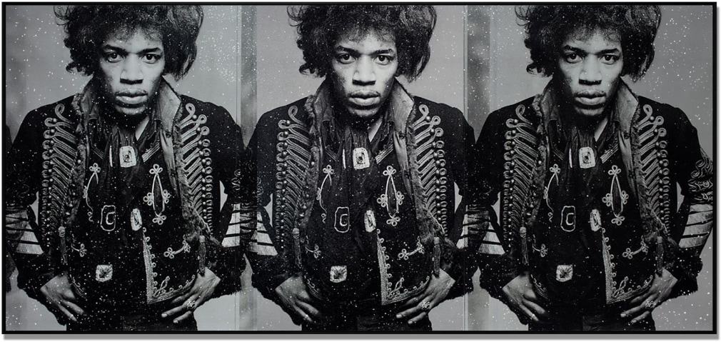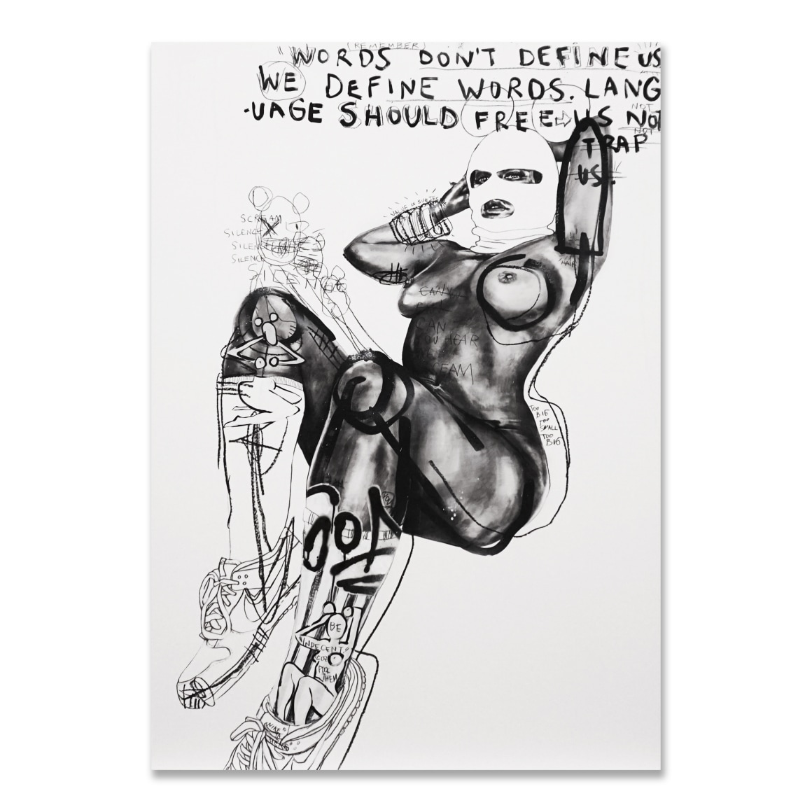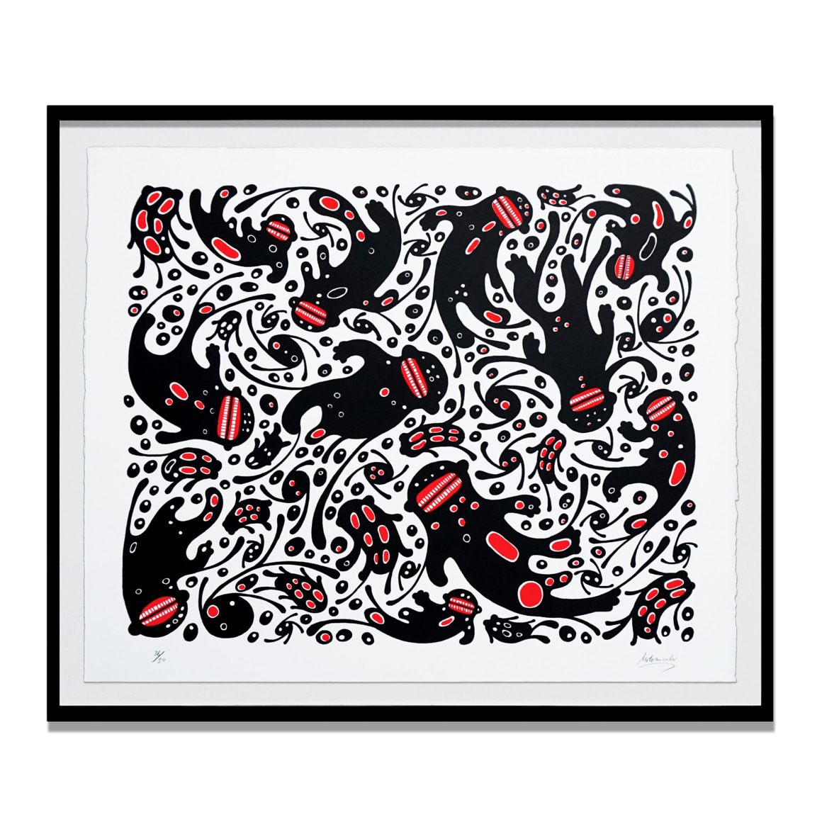 Acrylic, oil based ink and diamond dust hand pulled screen print on Coventry paper in B+W